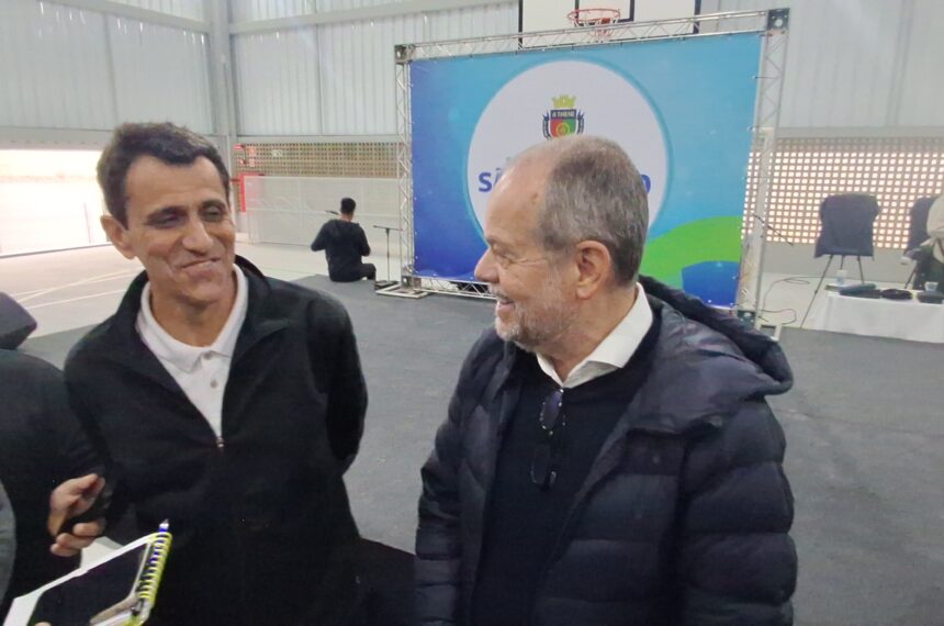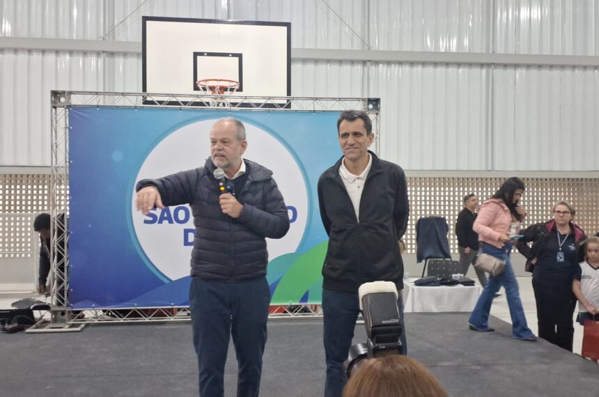 O prefeito Tite Campanella (PL) foi sucinto ao conversar com os pais, alunos e autoridades presentes, mas explicou sobre o uso de outra unidade escolar pelos alunos enquanto o complexo passava por conclusão.