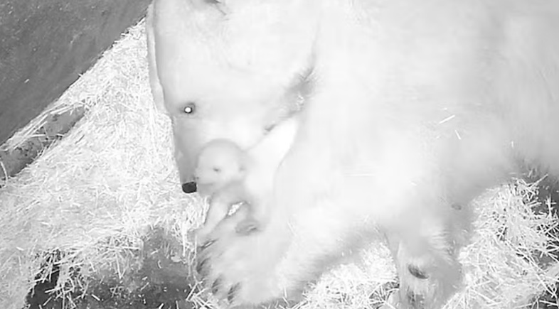 As imagens do nascimento foram capturadas por câmeras instaladas na área destinada aos animais. As gravações mostram a pequena ursa, que nasce sem pelos, sendo cuidadosamente lambida pela mãe e depois colocada sobre seu corpo, um gesto essencial para manter o calor e assegurar a sobrevivência do filhote durante suas horas iniciais.