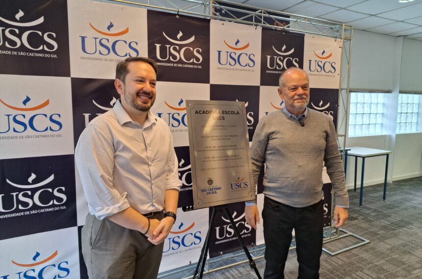 Na manhã desta sexta-feira (21), o prefeito de São Caetano do Sul, Tite Campanella (PL), e o reitor da USCS (Universidade Municipal de São Caetano do Sul), Professor Leandro Prearo, realizaram visita técnica às novas instalações da Academia Escola da USCS, que está localizada no 2º andar do Centro Comercial Empresarial São Caetano.