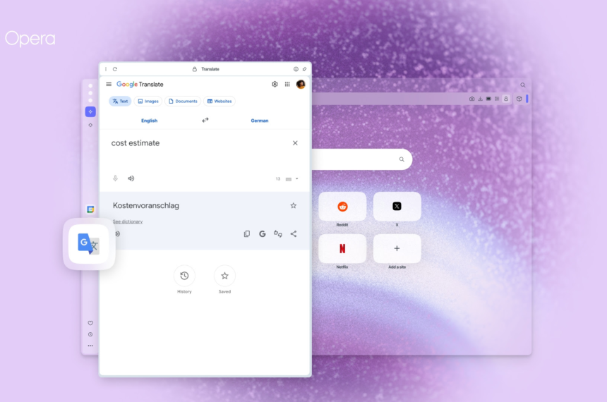 Opera integra Gemini e Google tradutor na barra lateral