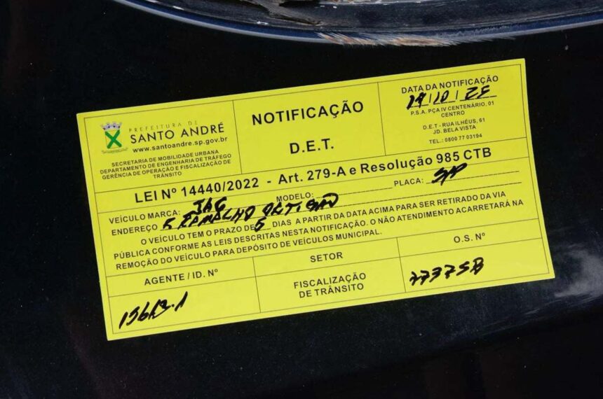 Operação Carro Abandonado: 831 notificações em Santo André