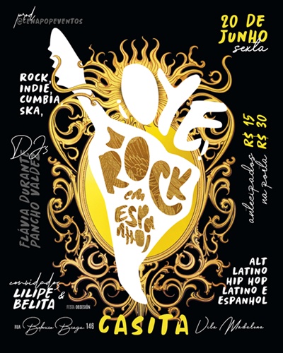 Com uma despensa de snacks à vontade, lounge com sofá, mesas e cadeiras e uma carta de coquetéis autorais inspirados em países da América Latina, a Casita recebe projetos musicais dedicados à música latinoamericana. A noite Oye Rock Em Espanhol é produzida pela Cena Pop Eventos Criativos, produtora do Baile do Bowie, LatinArab Disco, Carnaval Latino, Pop Plus e Feira do Brechó Plus Size, entre outros eventos.