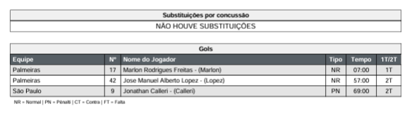 Confira o trecho da súmula de Palmeiras x São Paulo