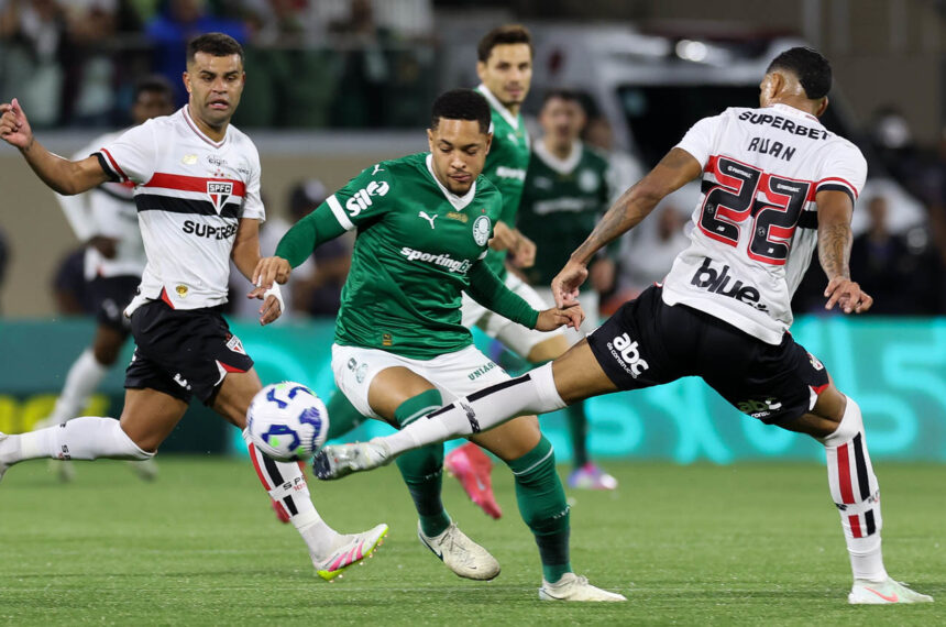 E quando o jogo se encaminhava para o final, Vitor Roque avançou pela esquerda, invadiu a área, em no bate-rebate, o atacante ficou com a sobra e cruzou para Felipe Anderson receber sozinho na entrada da área, que chutou, mas Rafael defendeu e deu rebote, aí o camisa nove alviverde aproveitou e marcou aos 49 minutos do segundo tempo, dando números finais ao Choque-Rei.