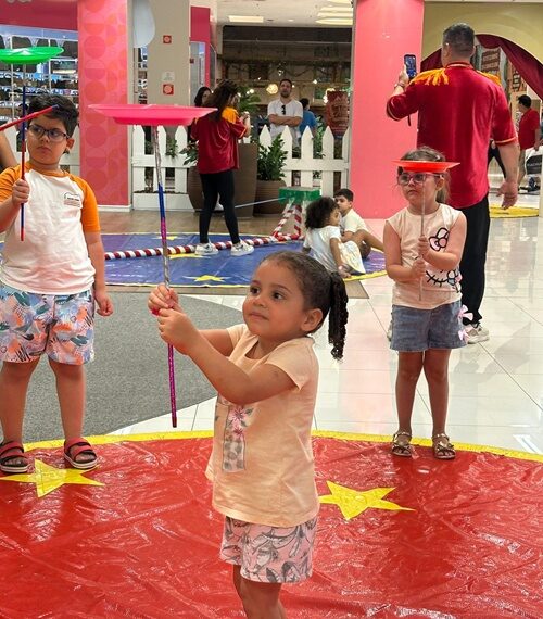 O circuito oferece uma experiência completa no espaço Coworking do shopping. Em cada sessão de 30 minutos, os participantes passam por três estações práticas e divertidas: malabarismo, equilíbrio na bola e slackline, sempre acompanhados por monitores especializados.