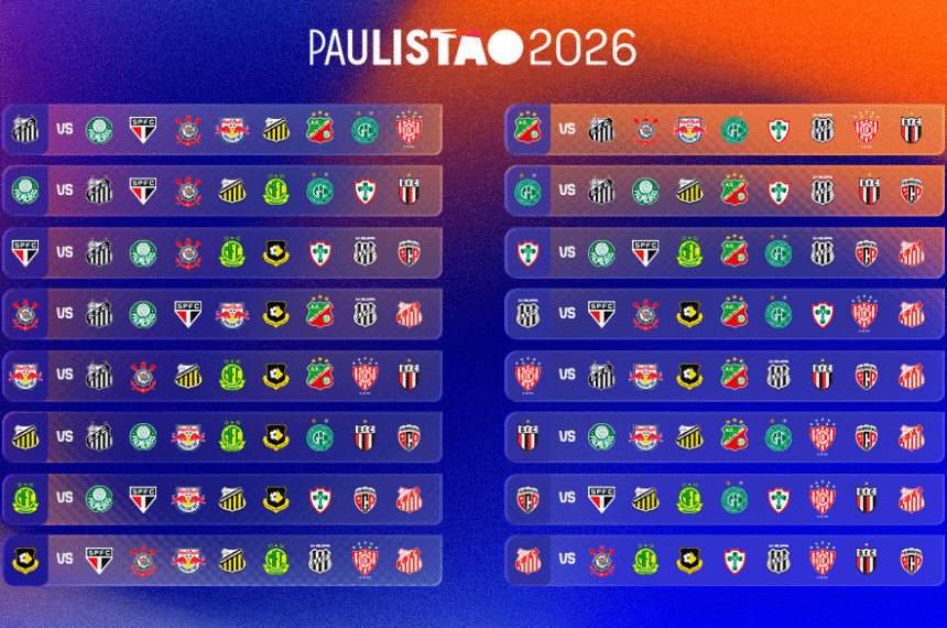 O formato encontrado pela FPF, no entanto, torna a vida dos times grandes, mais complicada. Cada um dos quatro gigantes paulistas enfrentará num espaço de oito partidas, os três principais rivais, além de Mirassol que faz grande campanha em 2025 ou Bragantino que deve seguir na primeira divisão.