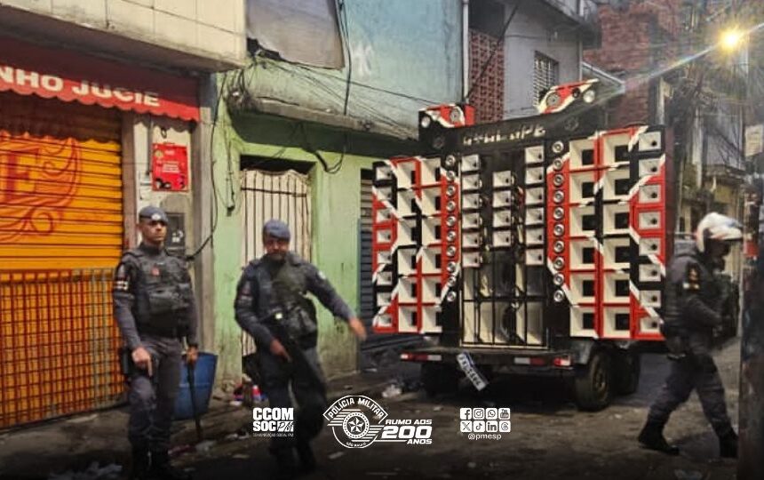 A Polícia Militar (PM), por meio da ROCAM (Ronda Ostensiva com Apoio de Motocicletas) do 5º Batalhão de Polícia Militar Metropolitano, agiu para coibir um baile funk clandestino na zona norte de São Paulo. A ação, realizada em cumprimento à Operação Manifestações Antissociais, flagrou um veículo transportando um grande equipamento de som automotivo, conhecido como “paredão”, na Rua dos Figos.