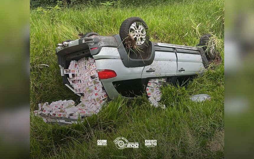 Motorista foge da PM, capota carro e é preso com carga de cigarros em Rio Preto