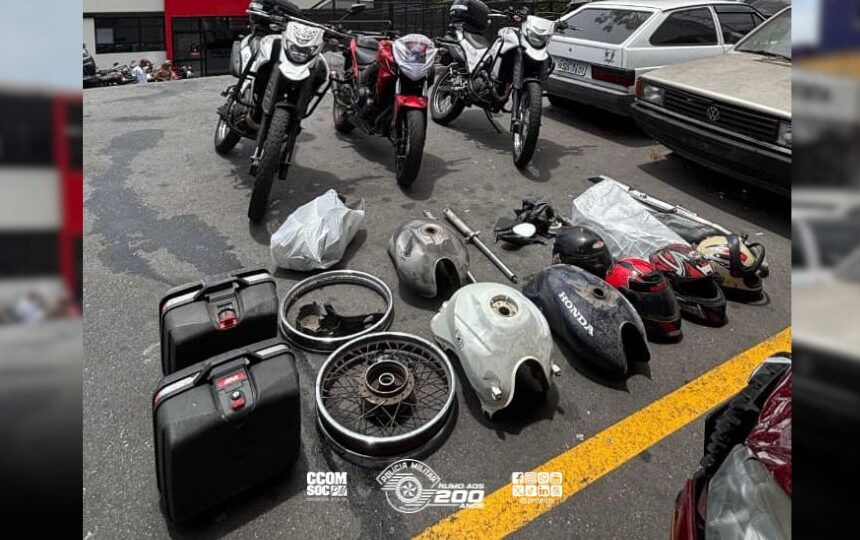 A operação resultou também na recuperação de diversas peças relacionadas a motocicletas, como bauletos, tanques de combustível, aros raiados, escapamentos, carenagens variadas, faróis, painéis desmontados, bancos e retrovisores, todos utilizados na montagem e desmontagem desses veículos. A motocicleta roubada foi recuperada durante a ação.