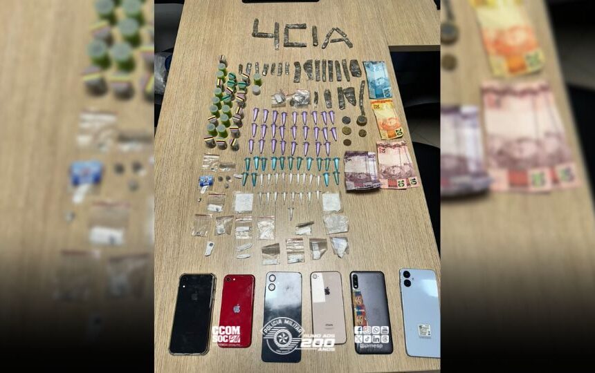 No total, as autoridades apreenderam 59 eppendorfs e três papelotes de cocaína, 37 invólucros de maconha, 28 porções de skank, quatro invólucros de dry e 17 invólucros de ice, além da quantia em dinheiro totalizando R$ 167,85 e seis aparelhos celulares.