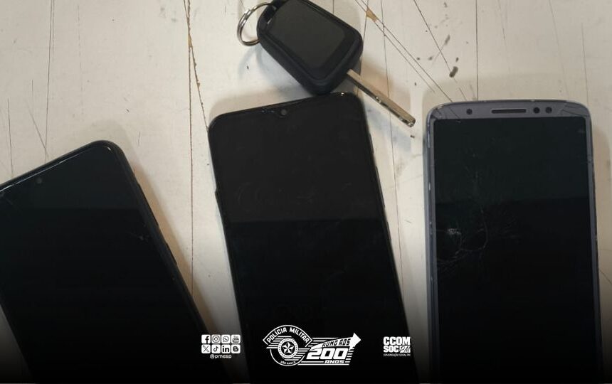 Adicionalmente, durante uma nova vistoria no táxi, foram encontrados dois aparelhos celulares a mais, cuja propriedade foi negada por dois dos ocupantes.