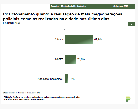 Consulta indica que 67,9% são favoráveis a mais megaoperações e 26,6% são contra