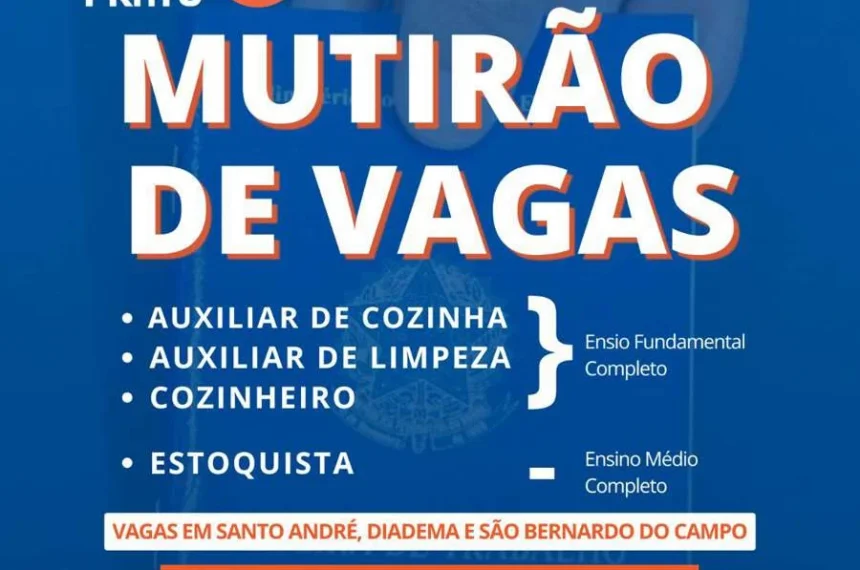A ação contempla candidatos com ensino fundamental e médio completos, com postos distribuídos entre Santo André, Diadema e São Bernardo do Campo. A proposta é ampliar o alcance regional das contratações e facilitar o acesso às vagas.