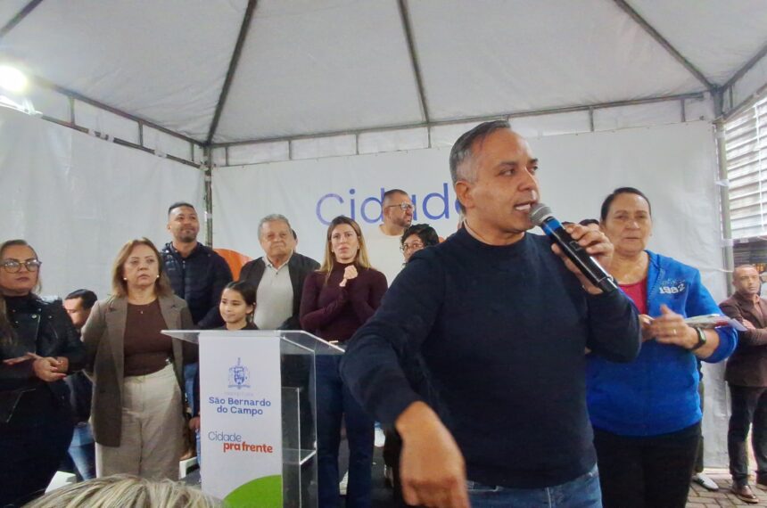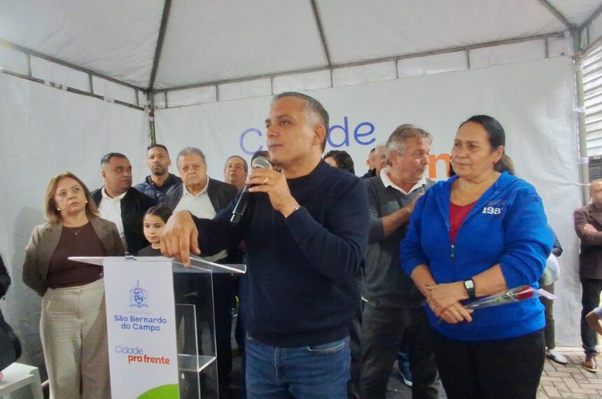 O programa Minha Rua Nova, da Prefeitura de São Bernardo do Campo, chegou ao Sítio Bom Jesus, no Grande Alvarenga, na manhã deste domingo (11), Dia das Mães, quando o prefeito Marcelo Lima (Podemos), acompanhado de sua mãe, Dona Cida, assinou a ordem de serviço para início dos trabalhos, ao lado de secretários, da vice-prefeita, Jessica Cormick, vereadores e muitos populares.