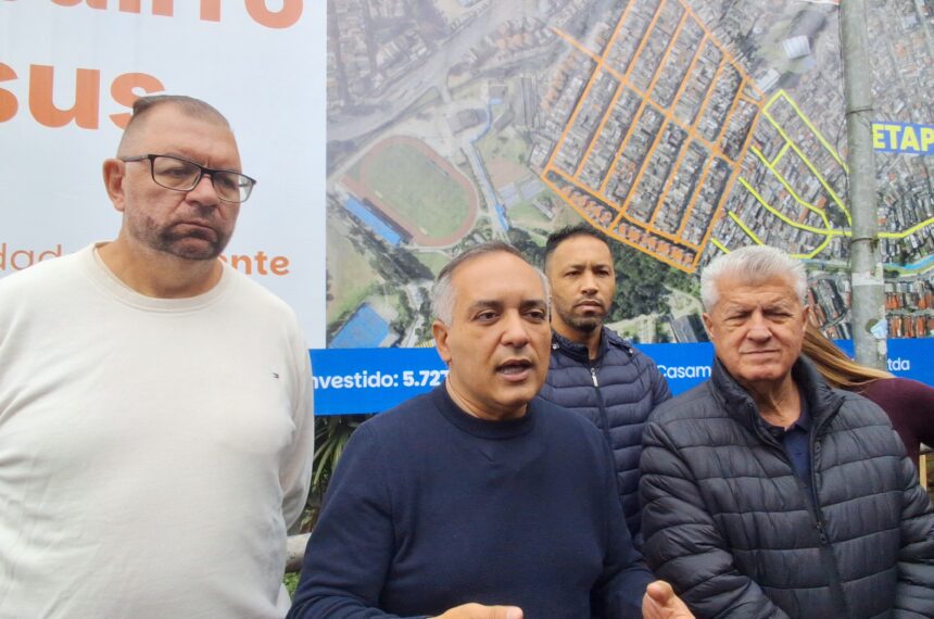 “Recapeamento de 22 ruas, que vão ser iniciadas ali na divisa com o Jardim Cláudia. Começamos com a Praça Frei Damião, que já está em fase adiantada, e vamos continuar com essas 22 ruas. O trabalho aqui está previsto em 60 dias, mas pretendemos também fazer outras ações de zeladoria aqui. Nós vamos fazer a poda – de árvores – e a limpeza desse córrego, tem uma praça que está precisando de uma intervenção urgente. Nós vamos pintar e grafitar essa parede aqui está muito feia. Então, nós vamos fazer outras intervenções de zeladoria aqui para completar essa obra de recapeamento”, listou Fernando os outros serviços que serão feitos.