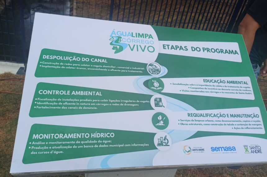 A Prefeitura de Santo André lançou oficialmente o programa Água Limpa, Córrego Vivo, iniciativa voltada à recuperação ambiental, monitoramento e requalificação dos cursos d’água do município. O evento ocorreu no início de abril, dentro das comemorações pelos 473 anos da cidade.