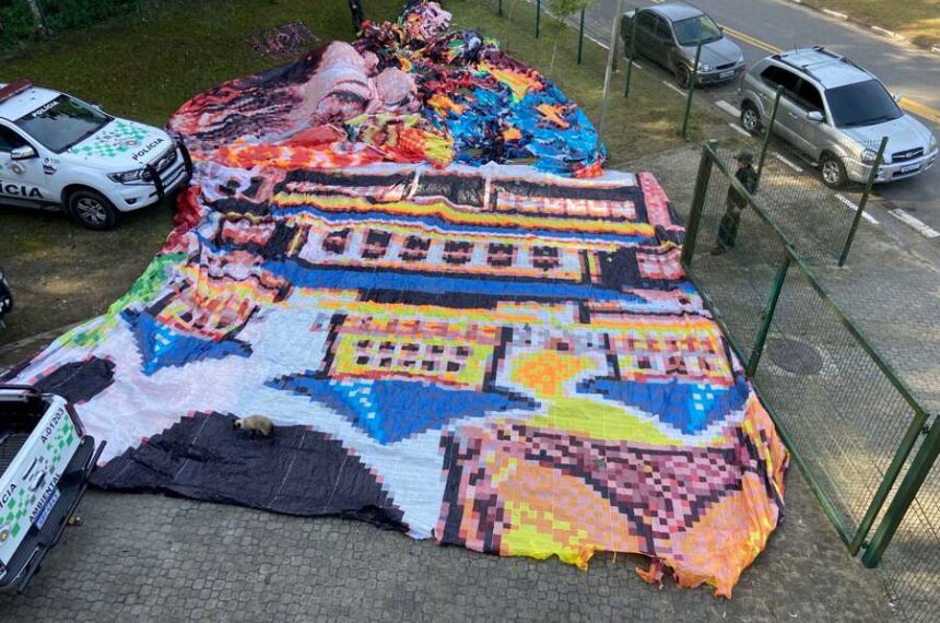 O balão, considerado de grande porte – com aproximadamente 20 metros –, foi recolhido na área de mata e levado para a 2ª Companhia da Polícia Militar Ambiental.