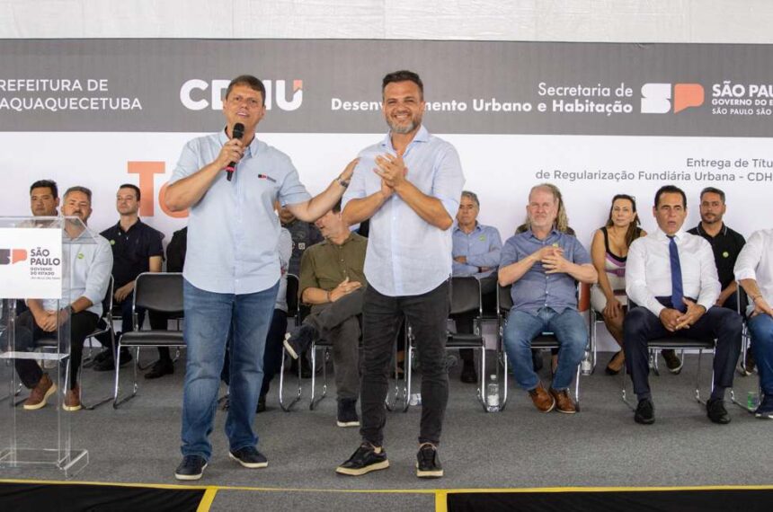 O Governo do Estado de São Paulo e a Prefeitura de Itaquaquecetuba realizaram, nesta terça-feira (24), a entrega de 1,2 mil matrículas habitacionais do Jardim Odete II, em mais uma etapa estratégica de regularização fundiária no município. A solenidade ocorreu no Largo da Vila São Carlos e contou com a presença do governador Tarcísio de Freitas, do deputado estadual André do Prado, presidente da Assembleia Legislativa do Estado de São Paulo, do deputado Jorge Wilson, além de vereadores, secretários municipais e do prefeito Eduardo Boigues.
