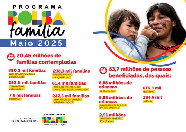VULNERÁVEIS — Em maio, o Bolsa Família beneficia, em seu grupo prioritário, 242,5 mil famílias indígenas, 282,8 mil famílias quilombolas, 238,3 mil famílias em situação de rua e 380,2 mil famílias de catadores de material reciclável. Além disso, o programa ampara 7,8 mil famílias com crianças em situação de trabalho infantil e 61,4 mil famílias com integrantes resgatados de trabalho análogo ao escravo.