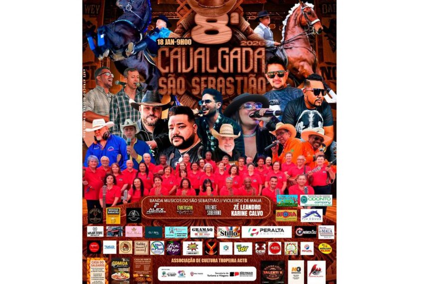 Entre as atrações confirmadas estão Banda Músicos do São Sebastião, Violeiros de Mauá, Alex Fernandes, Emerson Brasil, Valente Soberano, Zé Leandro e Karine Calvo, artistas que representam diferentes vertentes da música sertaneja e regional, em sintonia com o espírito da Cavalgada.