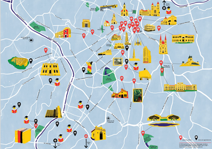 Baixe o arquivo ou clique nas indicações em destaque no mapa e descubra mais de 30 pontos turísticos, como monumentos históricos, museus, igrejas, cemitérios, escolas, bairros, estações de metrô e institutos culturais com influência direta de imigrantes, personalidades e artistas alemães.