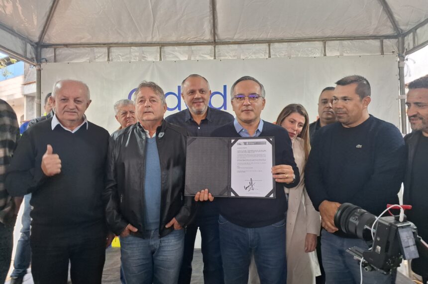 Ao lado da vice-prefeita, Jessica Cormick, de secretários e vereadores, o prefeito Marcelo Lima assinou a ordem de serviço para início imediato das obras de recapeamento asfáltico.