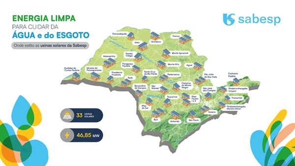 Companhia chega a 33 usinas entregues e reforça o uso de fontes renováveis para alimentar os equipamentos da operação de água e esgoto