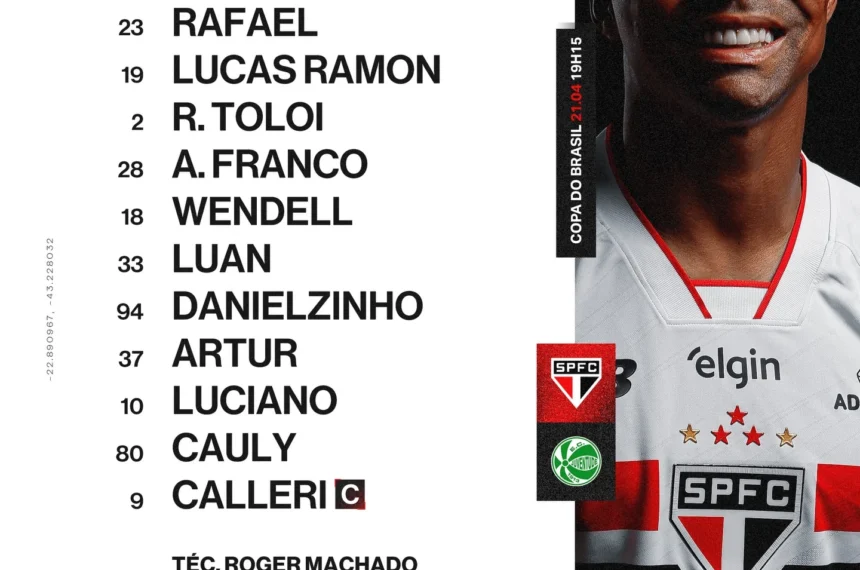 O São Paulo está escalado para enfrentar o Juventude pela estreia na Copa do Brasil. Roger Machado preparou um time com mudanças estruturais e apostou em novos nomes com ausências.