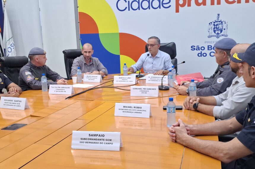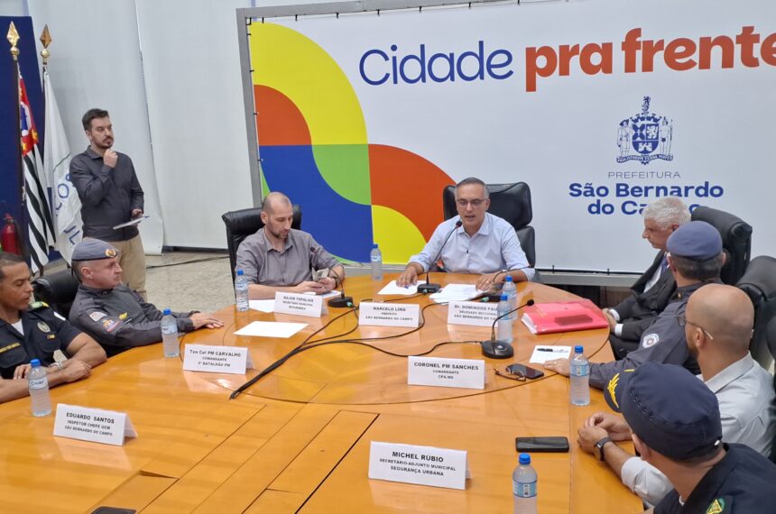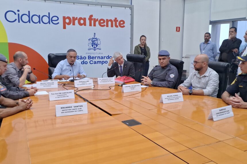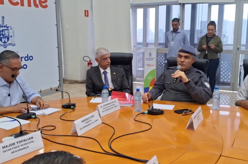 O prefeito de São Bernardo do Campo, Marcelo Lima (Podemos), ao lado de autoridades representantes da Polícia Civil, PM (Polícia Militar) e GCM (Guarda Civil Municipal) apresentaram os números da Operação Força Total, que foi lançada no início de maio, e que culminou na prisão de cerca de 60 indivíduos, dispersão de bailes funks, além de outras ações.
