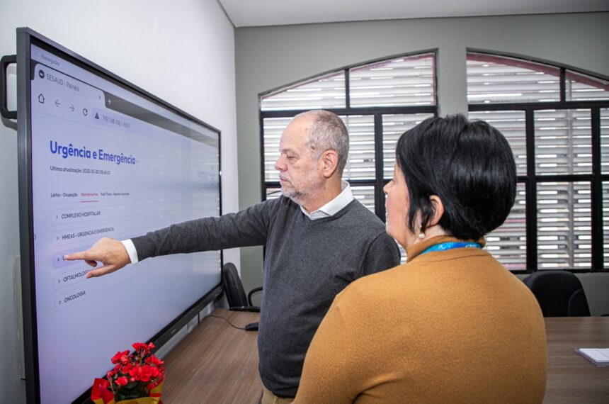 Todas as informações referentes aos atendimentos de saúde são visualizadas em painéis de indicadores localizados no Gabinete do Prefeito e na sala da Secretária de Saúde, Adriana Berringer.