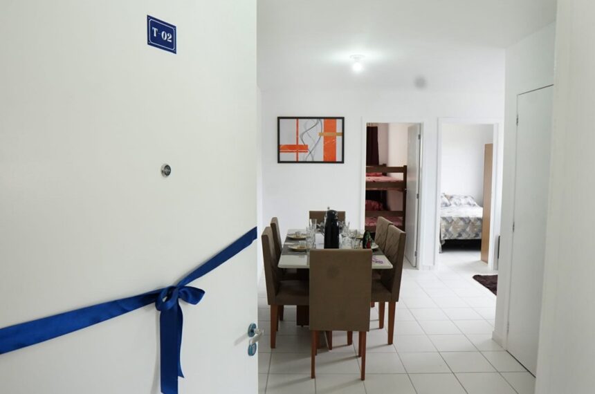 O novo condomínio é composto por três blocos, totalizando 84 unidades habitacionais com áreas variando entre 45 m² e 46 m². Cada apartamento inclui dois dormitórios, sala, cozinha, banheiro e área de serviço. O empreendimento ainda conta com salão de festas e uma área externa destinada ao lazer.