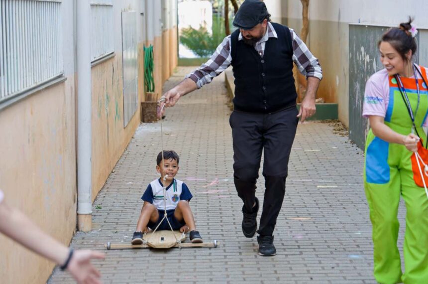 Depois de uma fase dedicada às atividades circenses, o Território Lúdico agora mergulha nas brincadeiras tradicionais, levando para dentro das unidades jogos e brinquedos que marcaram gerações, como pião, elástico, cantigas, carrinhos de rolimã, entre outros. Neste momento, o foco é com as EMEIs, que concentram crianças de berçário até o G5. As EMEFs ainda aprendem sobre o circo.