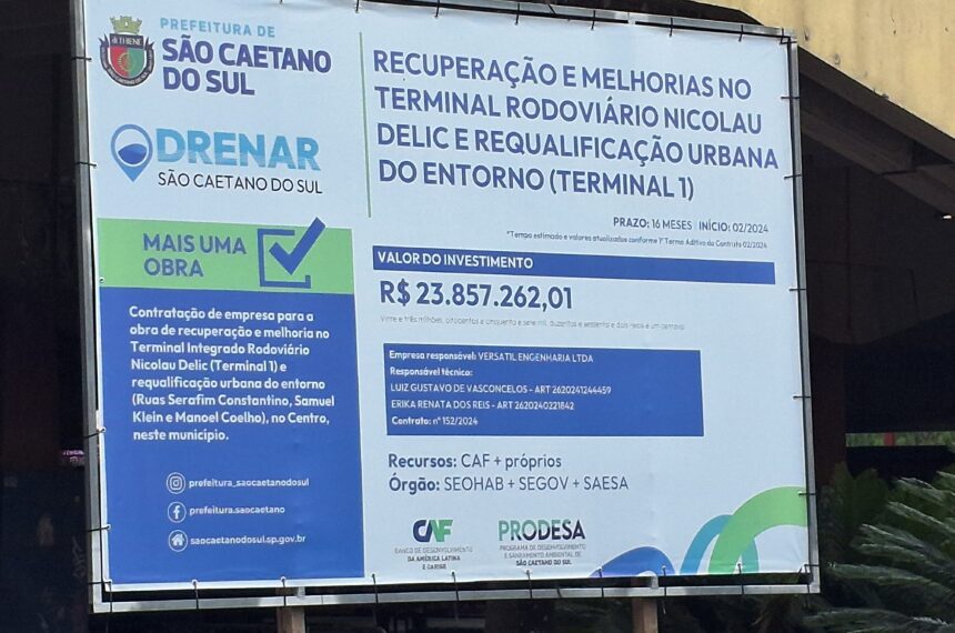 Com investimento de cerca de R$ 25 milhões, o prefeito de São Caetano do Sul, Tite Campanella, assinou a ordem de serviço para início das obras de reforma do módulo 2 do Terminal Rodoviário Nicolau Delic