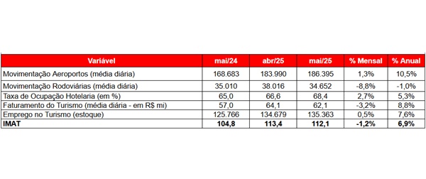 Além disso, o emprego diretamente ligado ao setor apresentou alta de 7,6%, dos quais 135,4 mil são vínculos formais, distribuídos em diversos segmentos, como alimentação, alojamento, locação de veículos e transporte rodoviário — no ano passado, o estoque era de 125,8 mil empregos formais.
