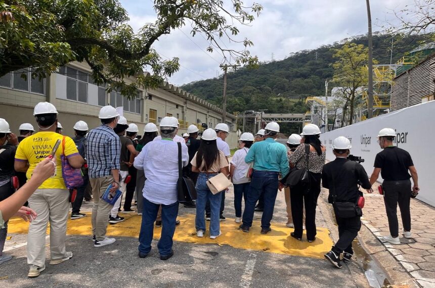 Durante o evento, os presentes realizaram visita técnica até a entrada no local de produção, acompanhados pelo diretor executivo industrial da Unipar, Ricardo Congro e explicou como funciona o processo químico da produção de cloro e soda.